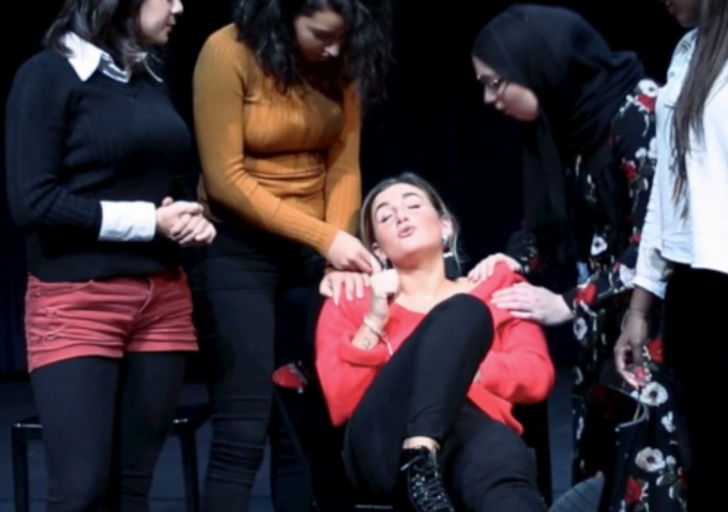 Van de vijftien deelnemers aan het traject, zie je vijf dames op het podium en twee op het scherm. De verhalen die zij vertellen, zijn de eigen ervaringen van de deelnemers. Voor de meeste van hen was het de eerste keer dat zij hun verhaal vertelden. Nu doen zij dat op het podium voor publiek persoonlijke verhalen in een theatrale setting.